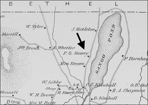 Early in the nineteenth century, Roaring Dan Seavey’s great-grandfather, Clement Seavey, moved from New Hampshire to Gilead, where his sixth child (of at least fourteen), also named Clement Seavey, was born in 1807.4 Around 1823, Clement Sr. moved to Bethel, where he set up a homestead on the Grover Hill Road at the corner of a now-abandoned road which then led to Albany.5