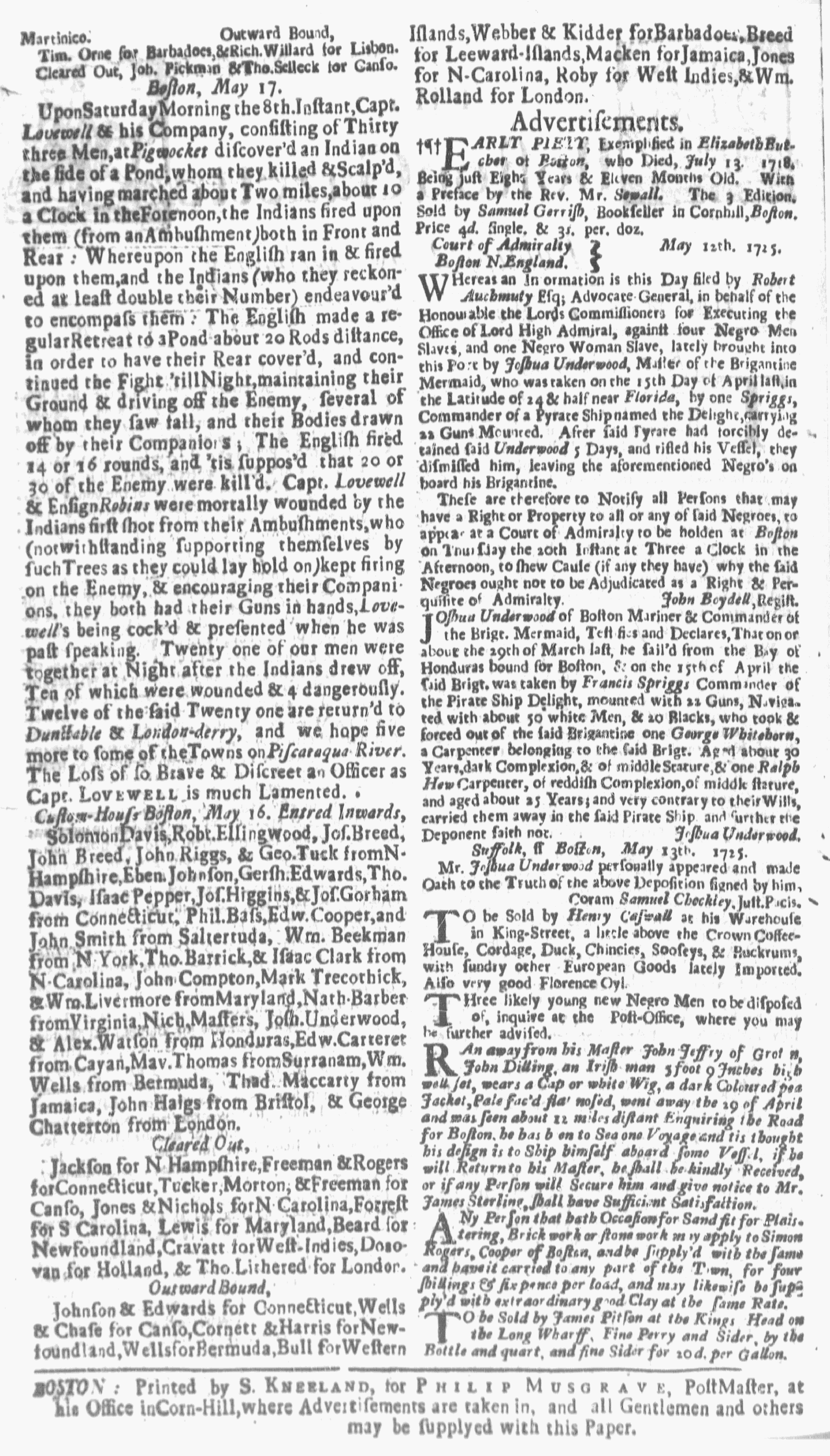 Details of “Lovewell’s Fight” of 1725 Found to Be in Error